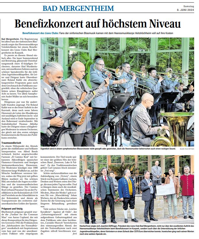 Die Fränkischen Nachrichten schreiben am 8. Juni 2024 so über das Konzert.